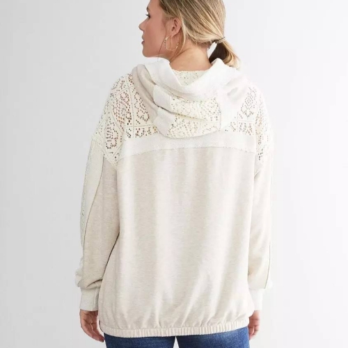High Quality 400gsm Cotton Sweatshirt Hoodies for Women Vintage Style with White Lace Sleeves and Hooded Collar for Autumn.