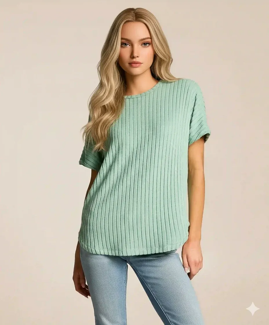This Brushed Rib Short Sleeve Topstands out with its avant-garde strappy V-neckline. The intricate ladder-style detailing on both the front and back adds a modern, feminine touch to a classic silhouette. Designed with a relaxed fit and a subtle curved hem, it functions perfectly as a standalone fashion piece or a premium base layer for transitional seasons.