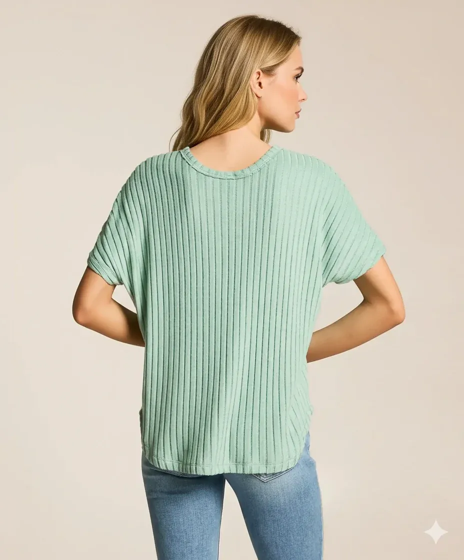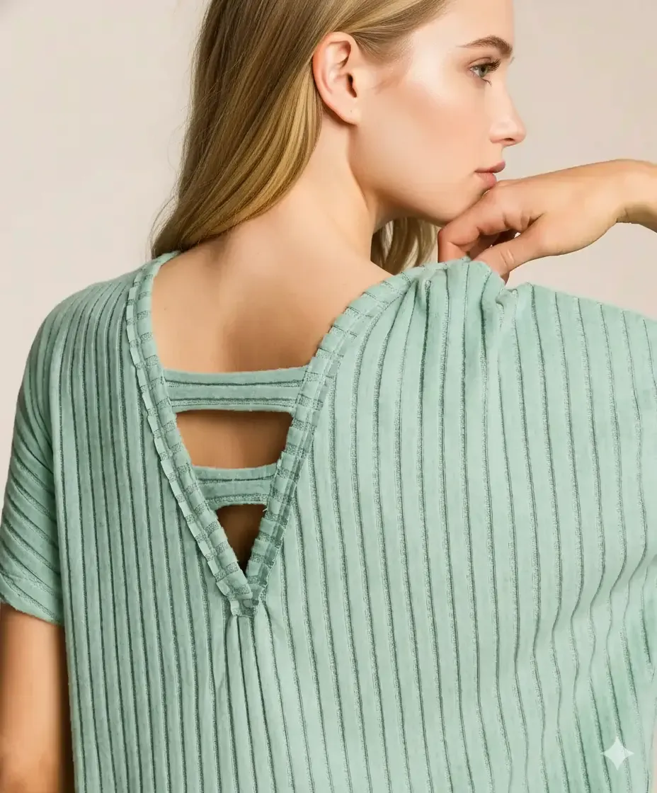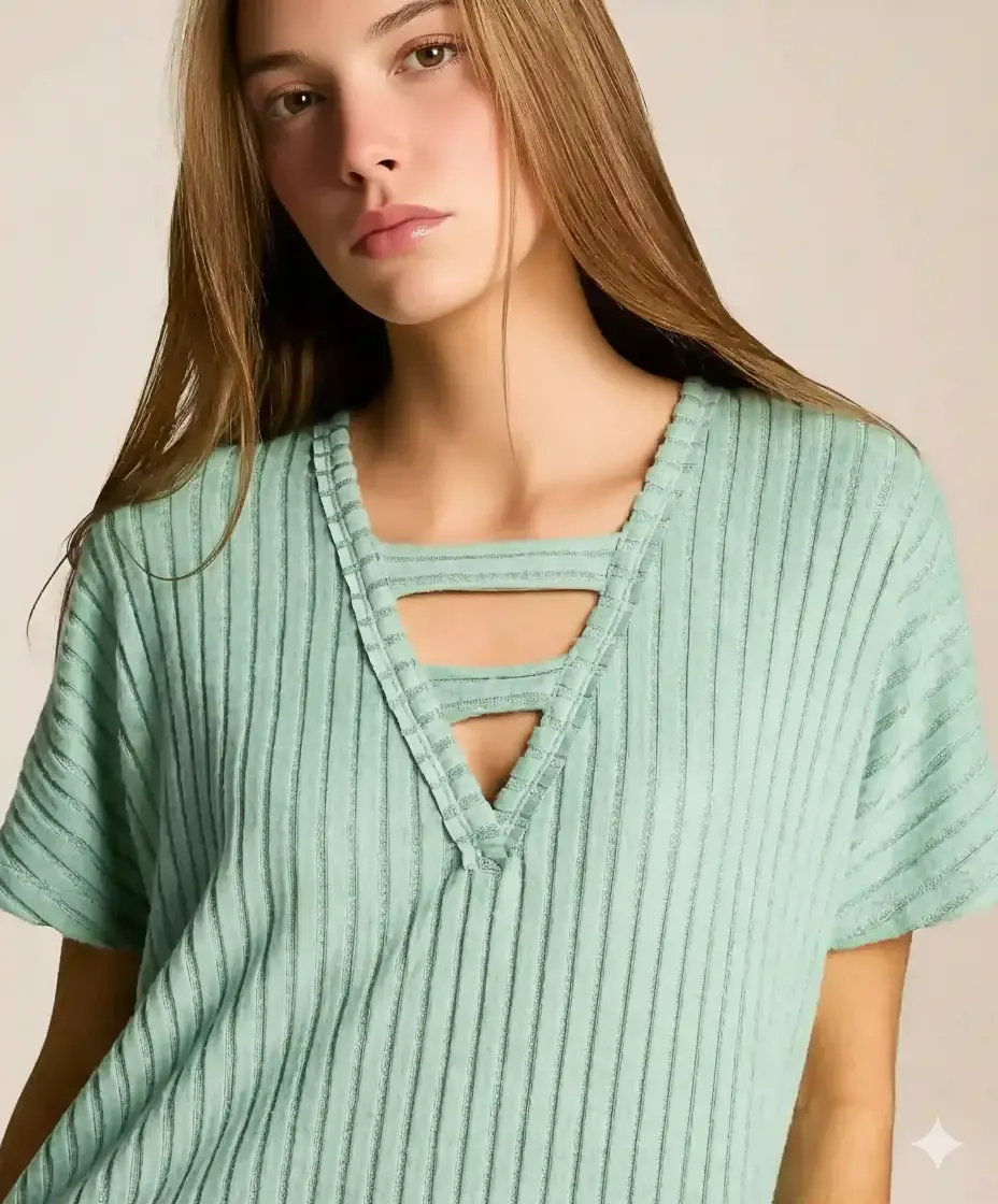 Sophisticated Design: The Strappy V-Neck Brushed Rib Top