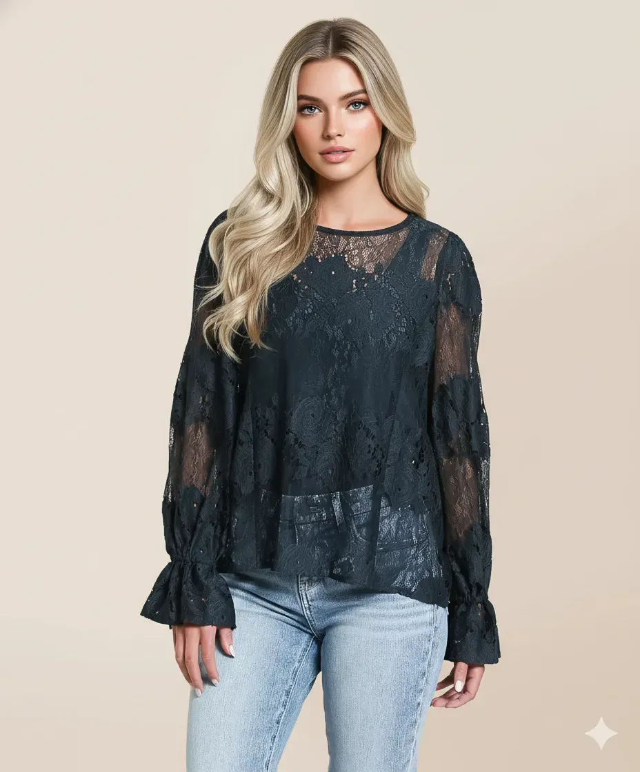 This Floral Lace Blouseis a masterpiece of delicate textile art. The intricate, high-definition floral patterns provide a luxurious 3D texture that stands out in any premium collection. Designed with a classic round neck and a romantic sheer aesthetic, it strikes the perfect balance between vintage charm and modern elegance.