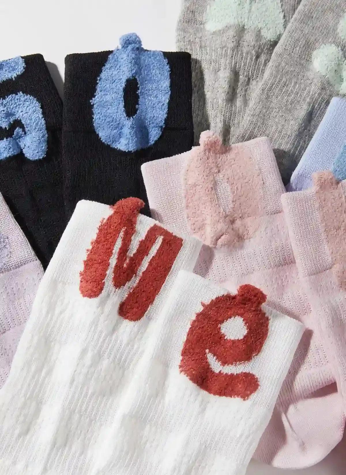 Our Mismatched AB Socksare designed for brands that want to stand out. Each pair features a playful yet sophisticated asymmetric design, complemented by high-quality 3D chenille (towel) embroideryletters like "Me", "Ok", and "Go". This tactile, raised texture adds a premium "designer" feel to basic hosiery, making it a high-turnover item for fashion-forward retail collections.