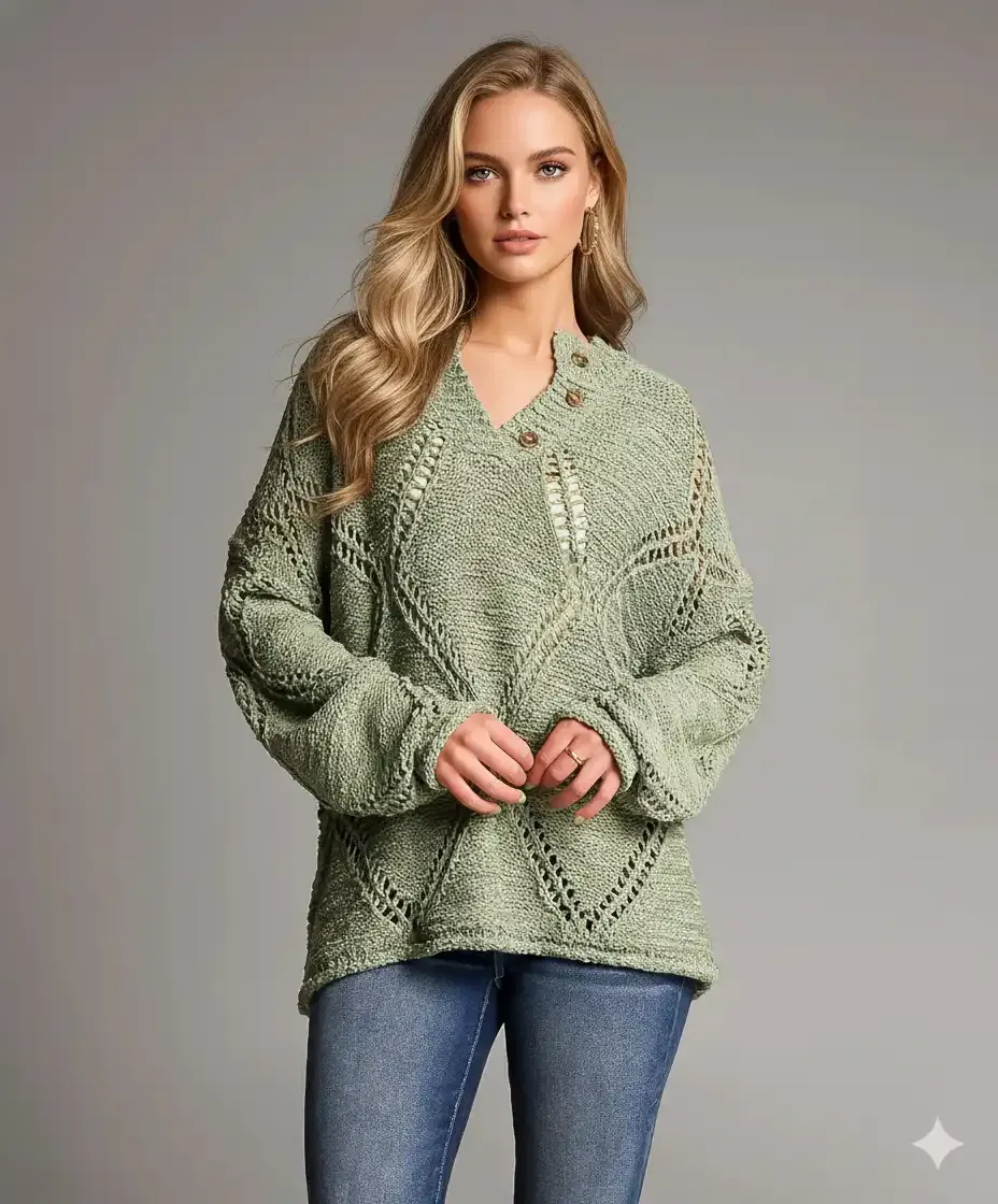 This Open Weave Sweaterstands out with its complex geometric pointelle pattern. The diamond-shaped open-knit design not only provides a high-end visual texture but also ensures maximum breathability, making it a perfect transitional piece for spring and summer evenings. The rolled trimfinish on the neckline, cuffs, and hem adds a relaxed, artisanal touch that appeals to contemporary fashion brands.