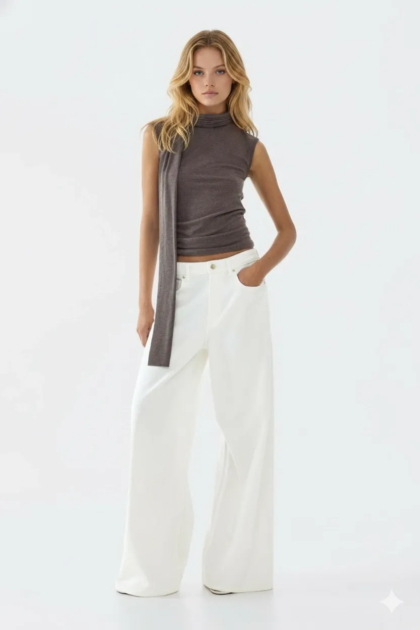 Innovative Sleeveless Scarf Collar Top for Modern Apparel Brands