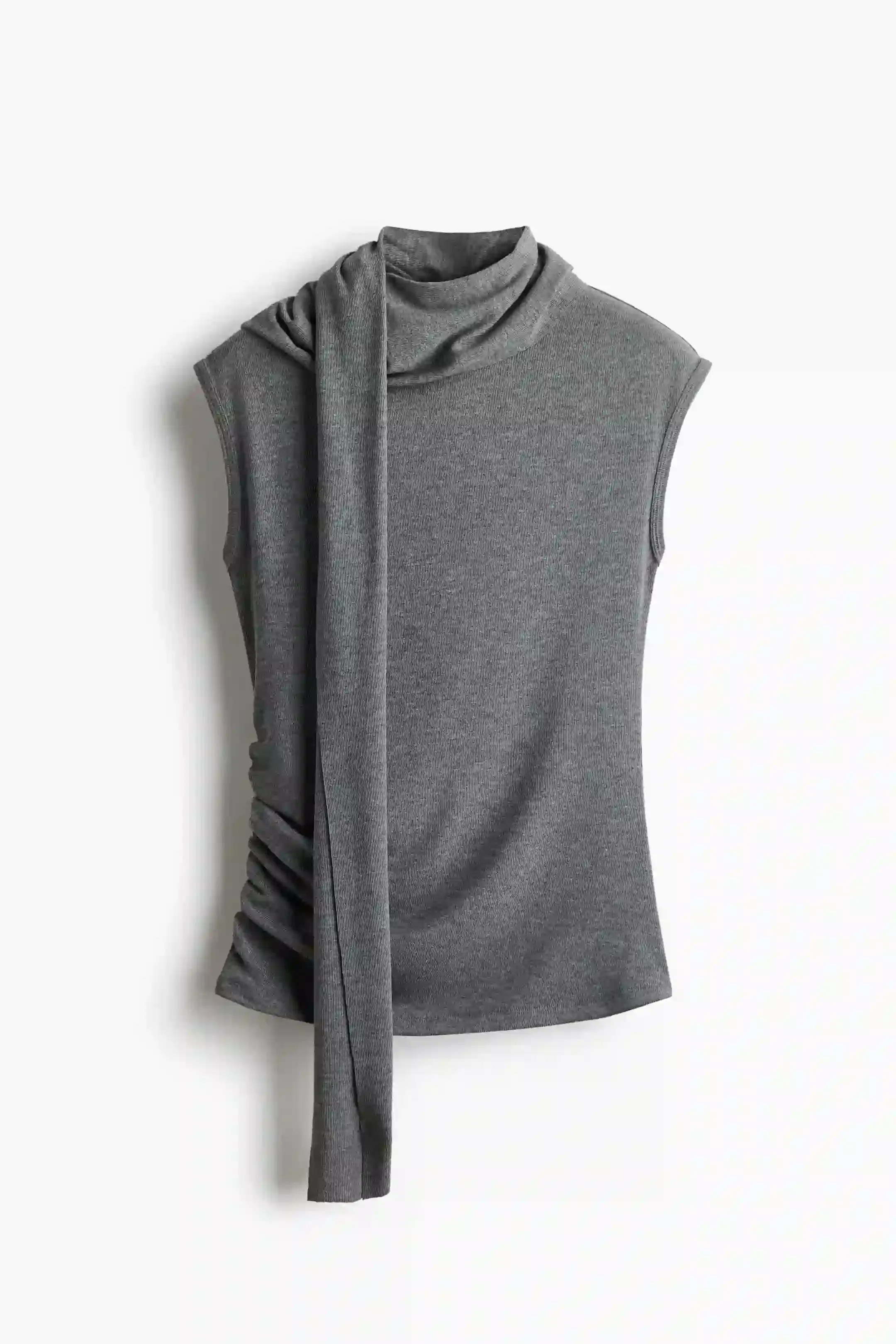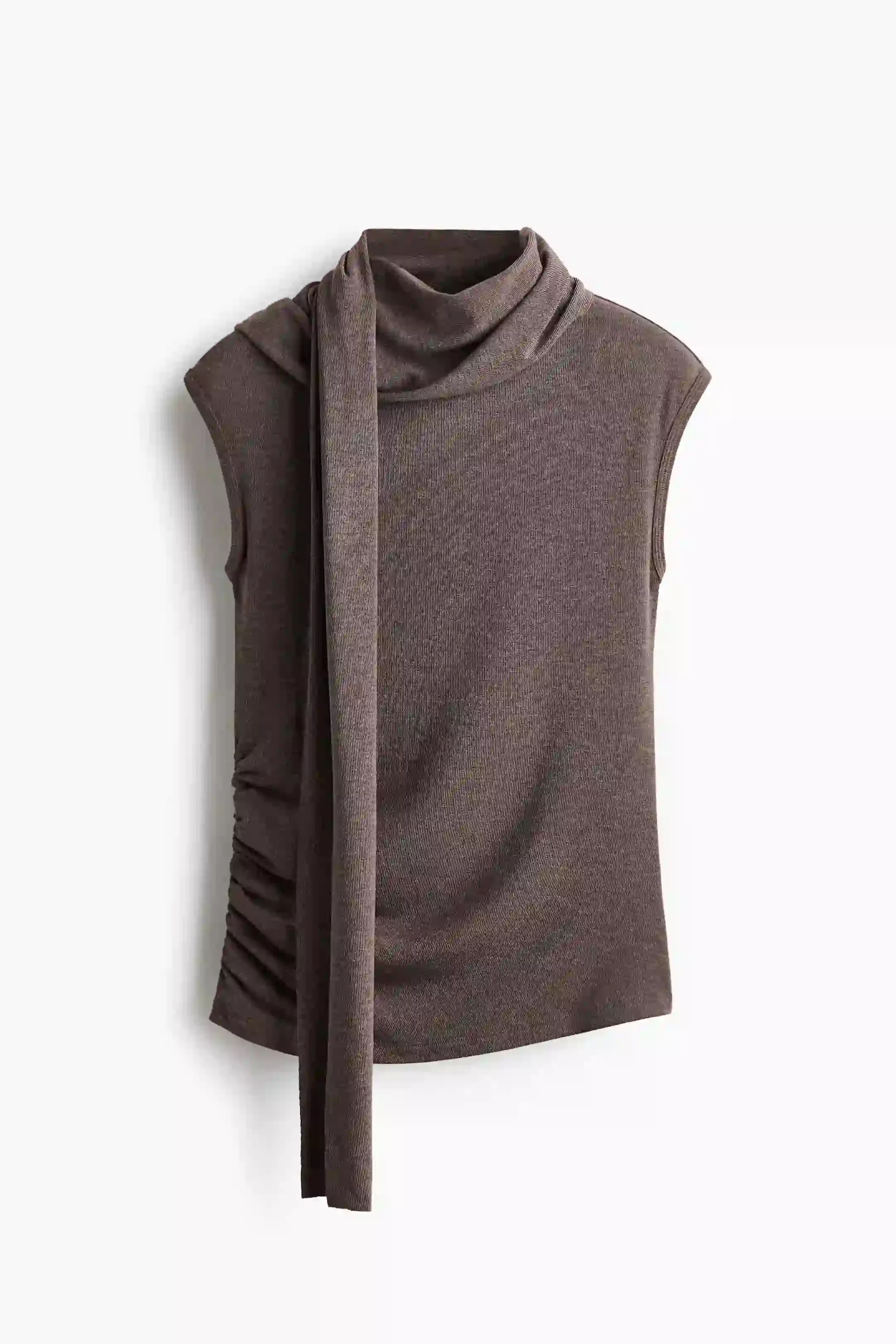 - Product Type: Sleeveless Scarf Collar Top / Draped Knit Vest