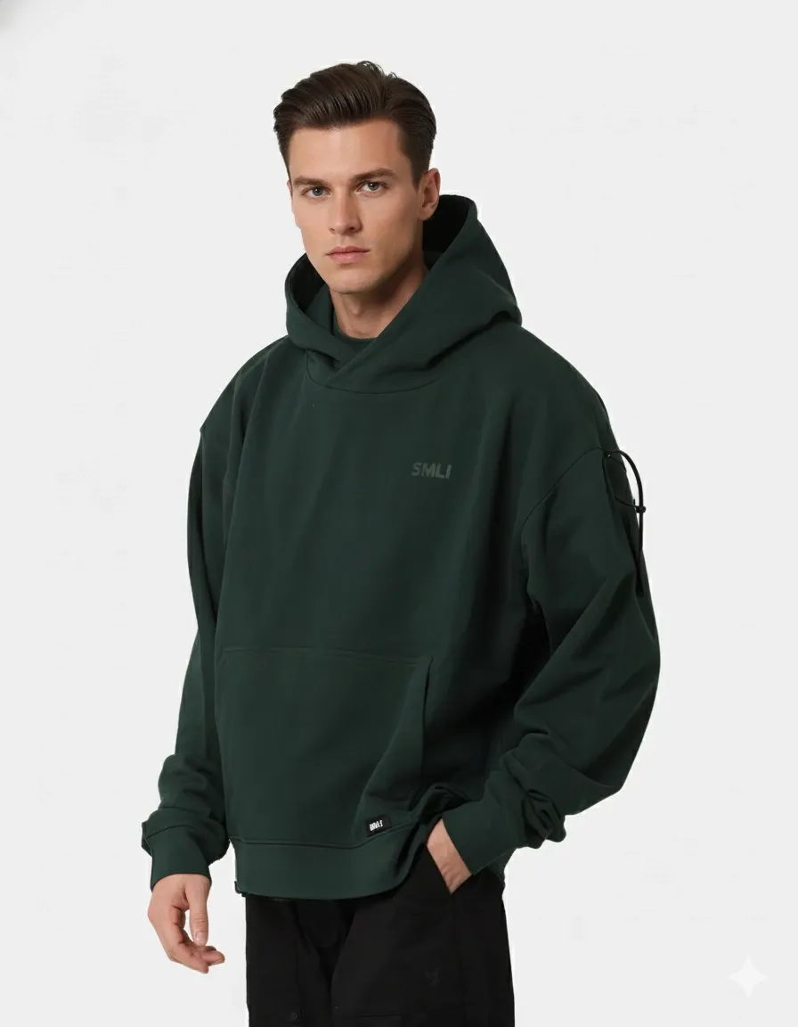 Inspired by contemporary streetwear aesthetics, this hoodie features a boxy fit and dropped shoulder construction, creating a relaxed yet structured profile that has become increasingly popular in global streetwear collections.