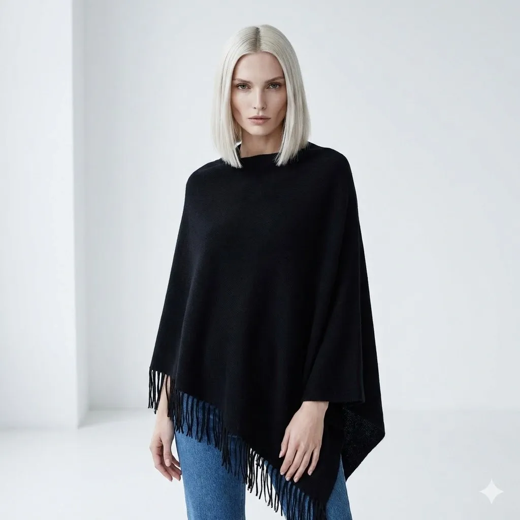 This Asymmetric Knit Ponchois designed for the modern woman who values both style and comfort. The unique diagonal cut creates a flattering silhouette that suits all body types, while the hand-finished fringe adds a touch of bohemian elegance. It functions perfectly as a lightweight outer layer for transitional seasons or a cozy wrap for chilly evenings.