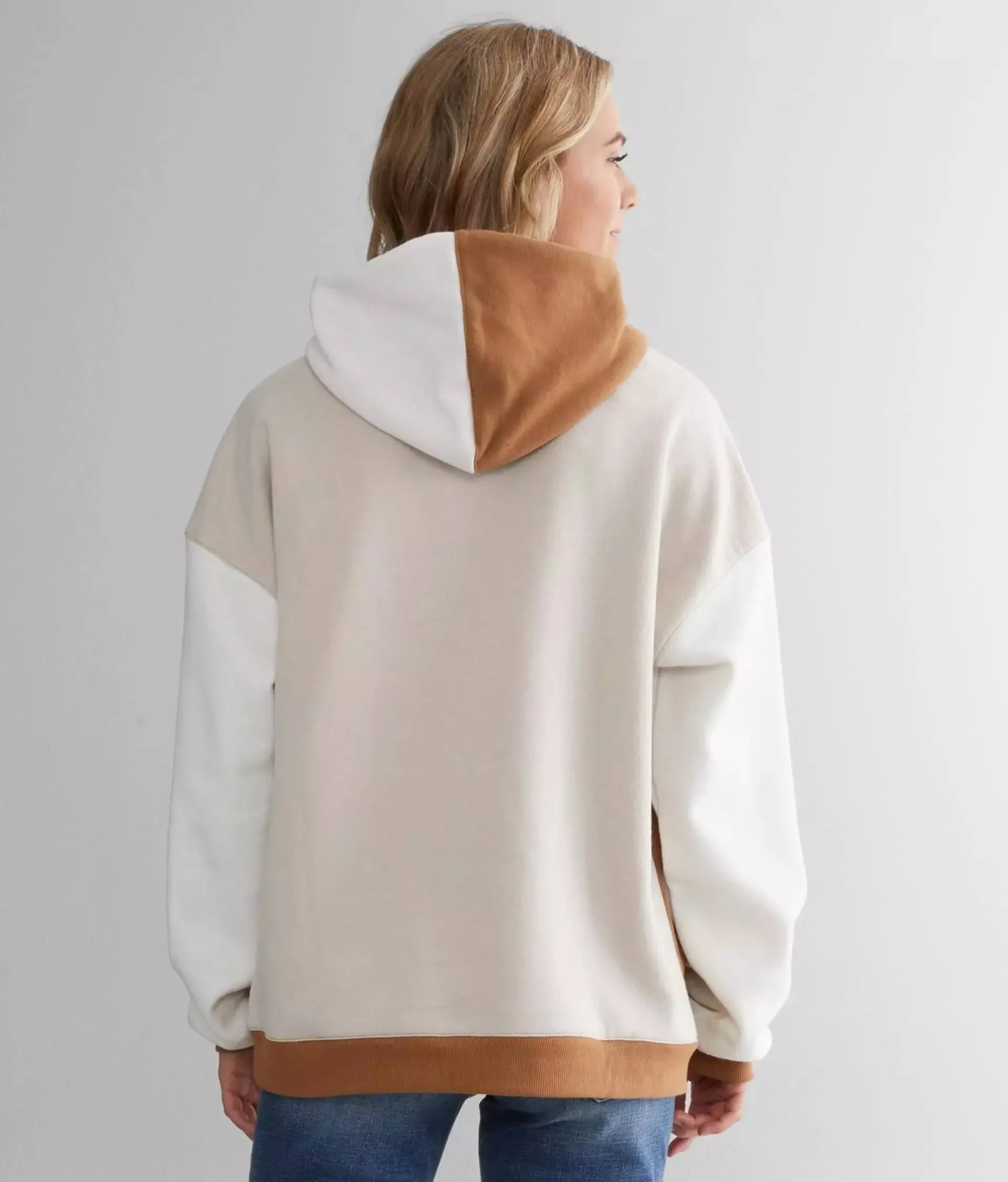 This Women's Color-block Hoodie combines a modern aesthetic with ultimate comfort. The strategic paneling of Earthy Brown, Crisp White, and Vibrant Coral creates a standout look for streetwear and loungewear brands. Designed with a relaxed, oversized fit and a functional kangaroo pocket, it meets the high demand for "Refined Comfort" in the 2026 fashion market.