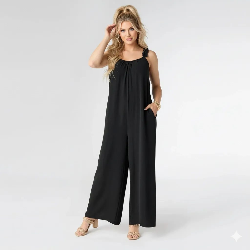 | Wide Leg, Sleeveless, Scoop Neck, Side Pockets |