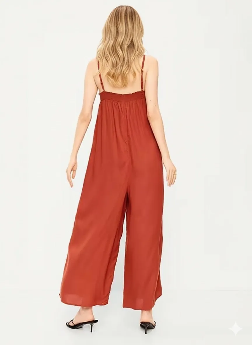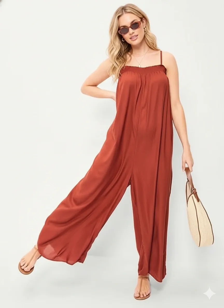 As a premier apparel contract manufacturer, we offer high-end bespoke production for this elegant Smocked Straight Neckline Jumpsuit. Crafted from 100% Viscose Rayon, this piece features a sophisticated smocked bodice, adjustable spaghetti straps, and a flowing wide-leg silhouette. We specialize in made-to-orderservices, helping fashion brands and retailers create high-quality, breathable summer collections.