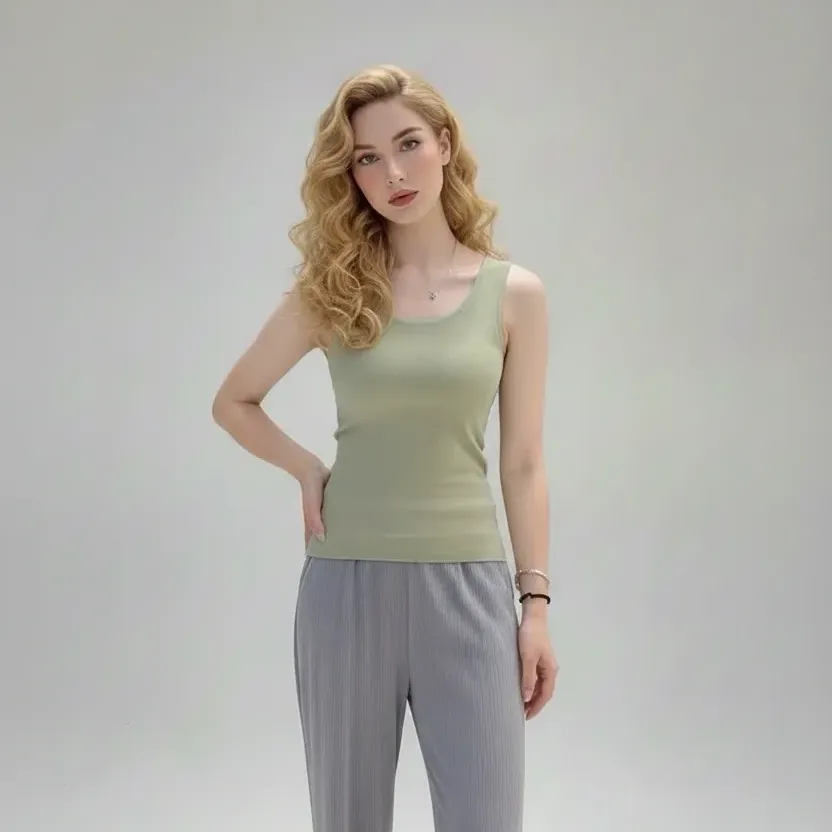 Our women's thermal tank top is engineered using premium Double-sided Brushed Thermal Fabric. This specialized material undergoes a meticulous brushing process on both the interior and exterior, creating a dense, plush micro-fleece texture. This "cloud-soft" finish effectively traps body heat while maintaining excellent breathability, making it a superior choice for winter base layers and premium loungewear.